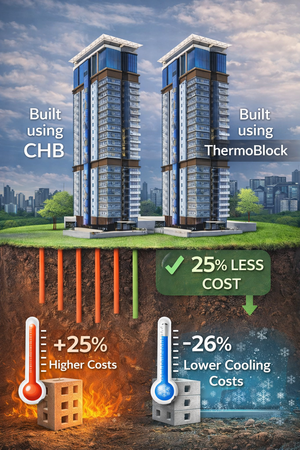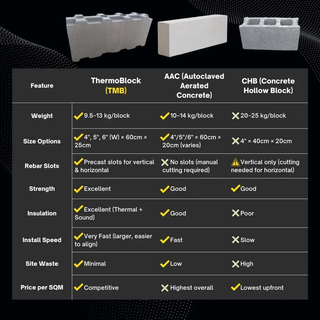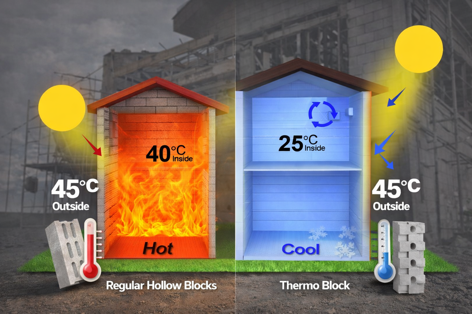 Traditional walls trap heat and drive up aircon costs. With ThermoBlock, you save thousands of pesos yearly on electricity bills while enjoying natural indoor comfort.